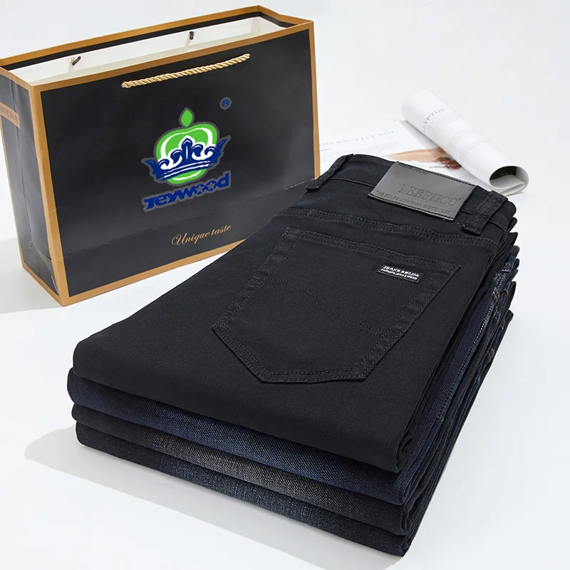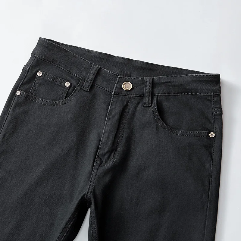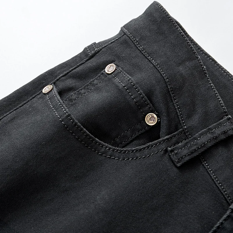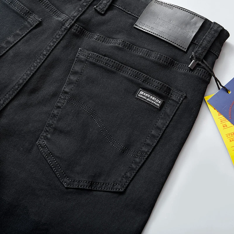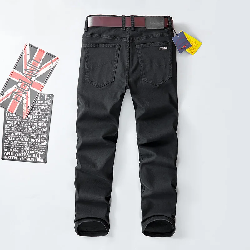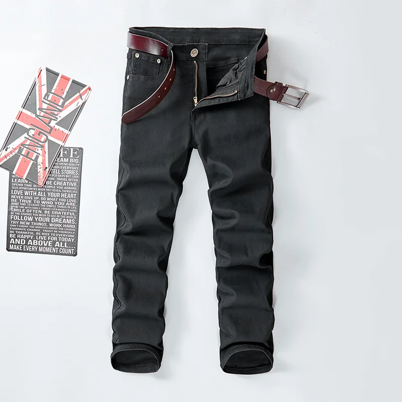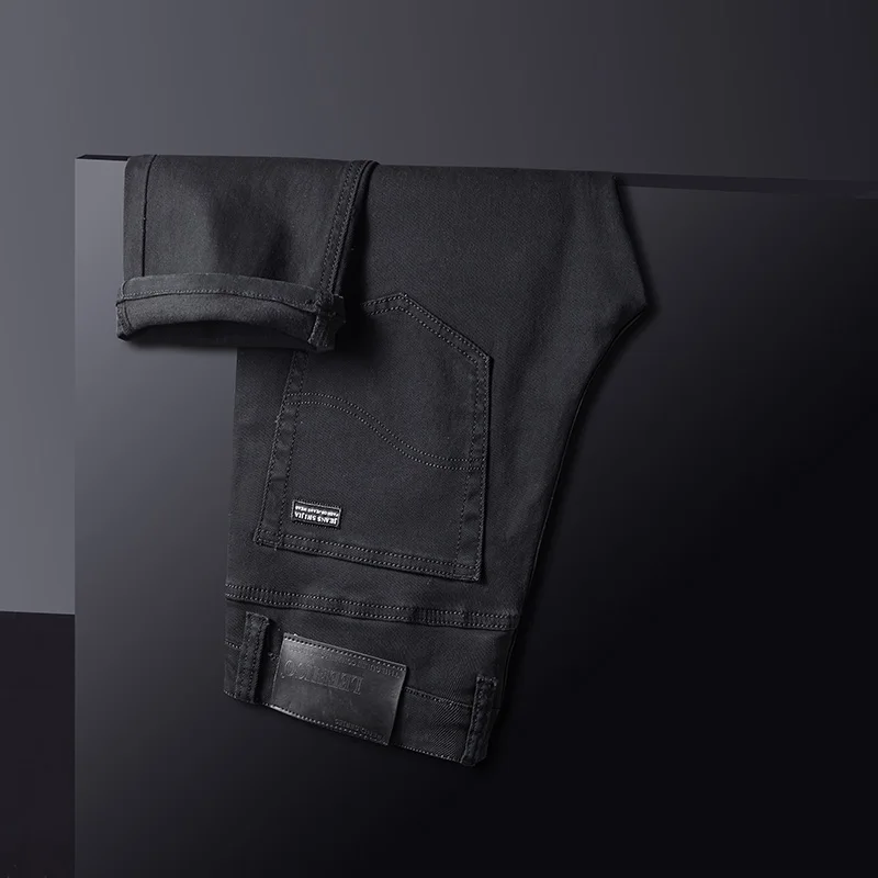 Новинка 2021, мужские черные прямые джинсы, высококачественные Стрейчевые деловые повседневные хлопковые брюки, мужские Брендовые брюки, Модель 38 40