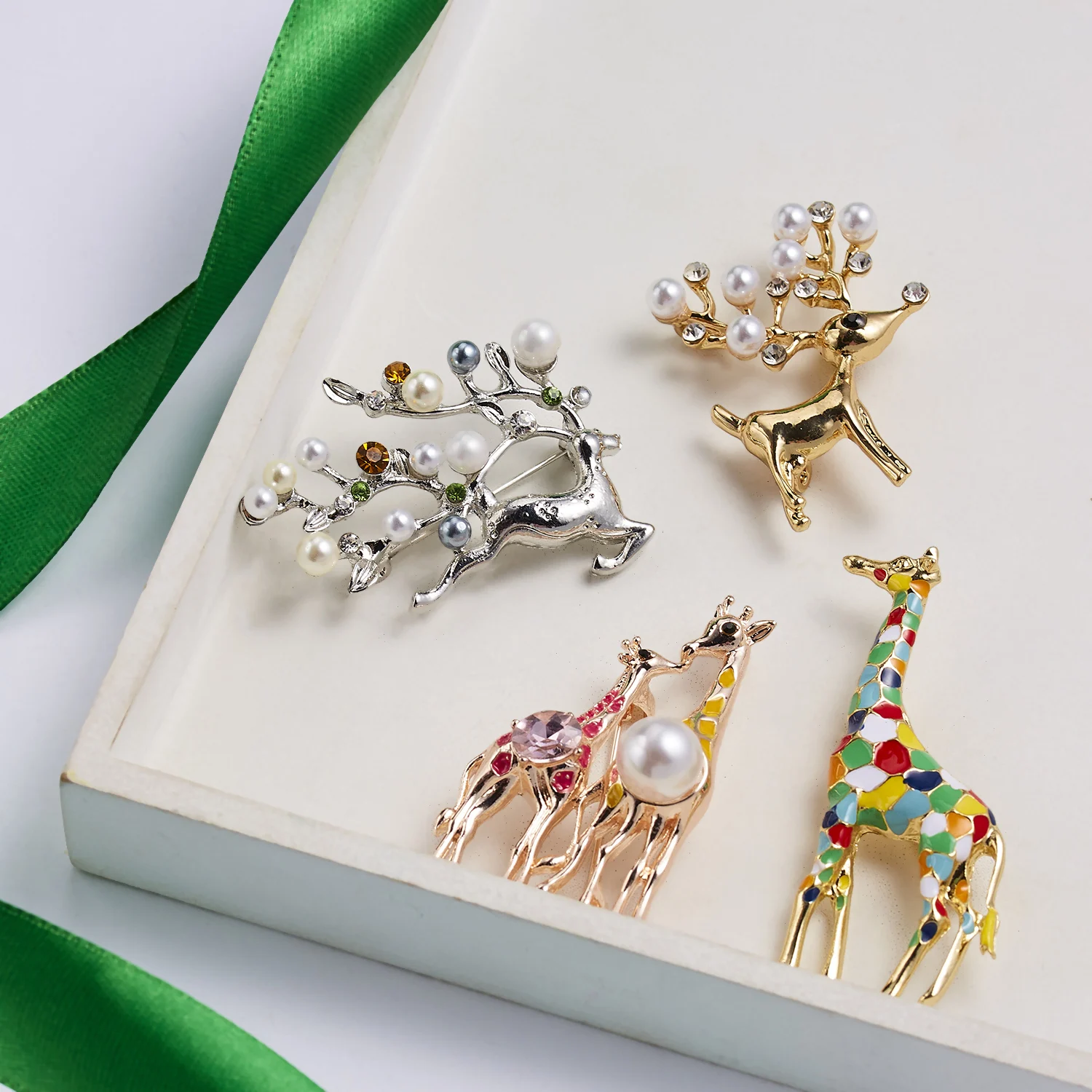 Rinhoo милые маленькие бриллианты Жираф Сика олень животные Рождество Лось бриллианты пальто корсаж новогодние ювелирные изделия