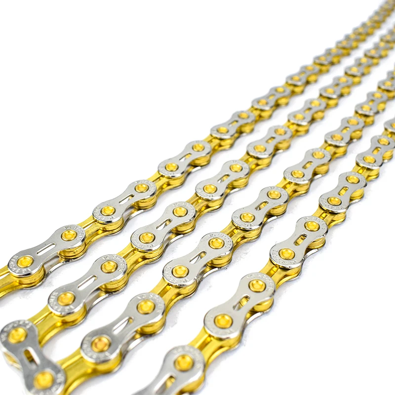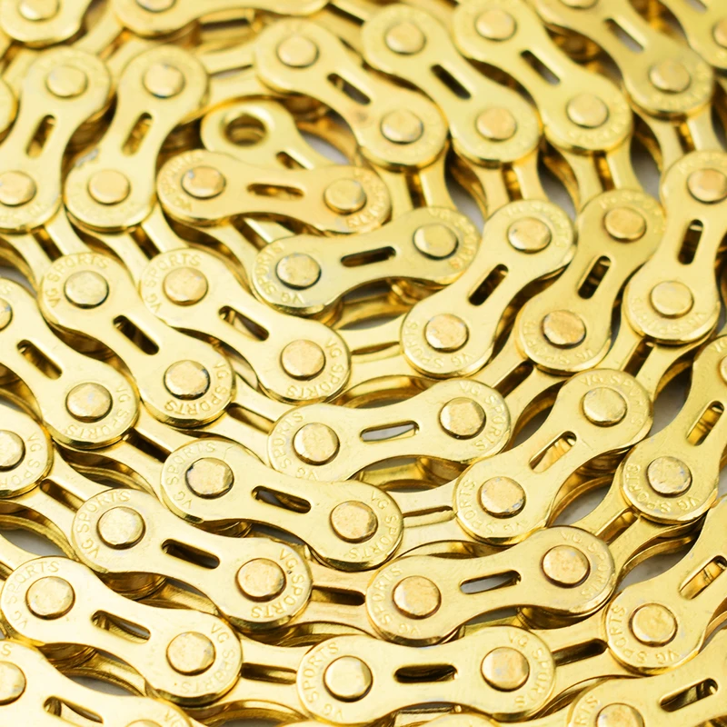 Спортивная велосипедная цепь VG 8 9 10 11 скоростей для горного велосипеда, ЗолотаяСеребрянаяРадужнаятитановая половинчатая цепь для горного велосипеда, цепи для горного велосипеда, часть 116 звеньев