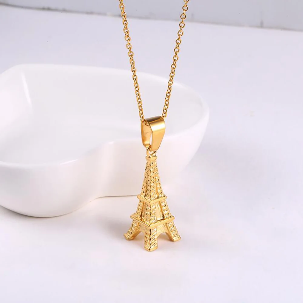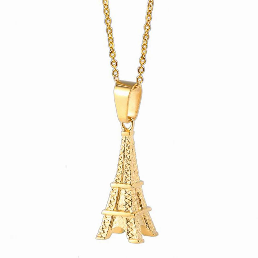 Изящное золотое ожерелье из нержавеющей стали с изображением Эйфелевой башни