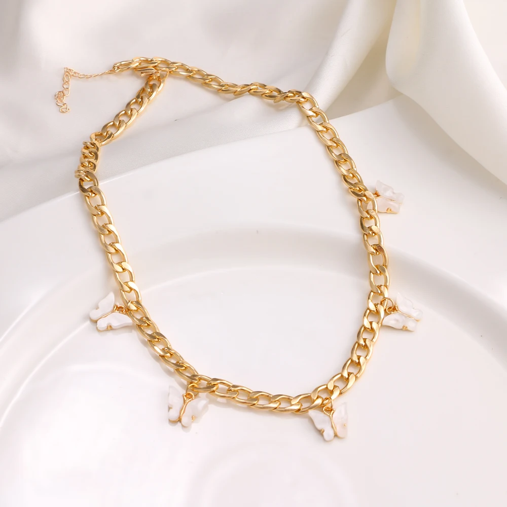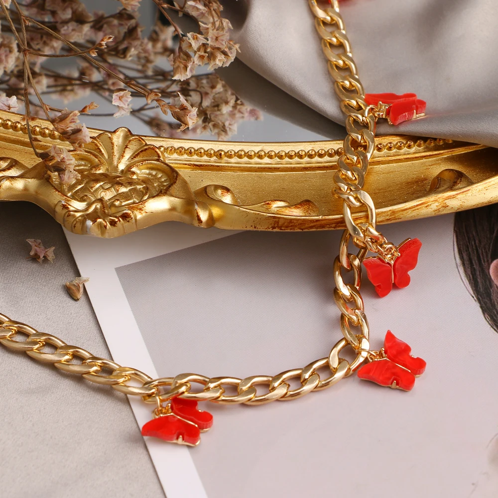 Женский чокер с кулоном в виде бабочки, золотистого цвета, на шею
