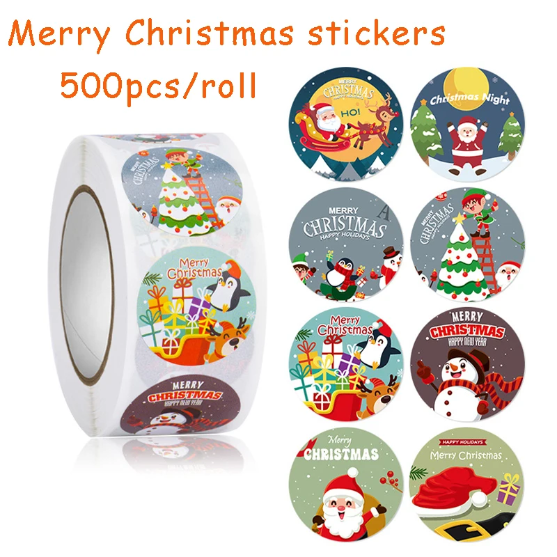 1 рулон рождественских наклеек, 500 шт., декоративные наклейки с жи...