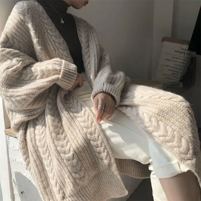 Японский милый вязаный кардиган Korobov, корейский милый кардиган с V-образным вырезом и длинным рукавом, Винтажный Длинный Кардиган оверсайз для женщин