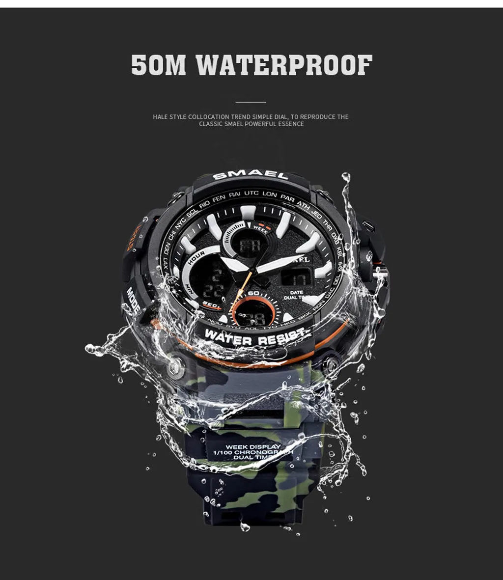 SMAEL мужские спортивные часы с двойным дисплеем, аналоговый цифровой светодиодный, электронные наручные часы