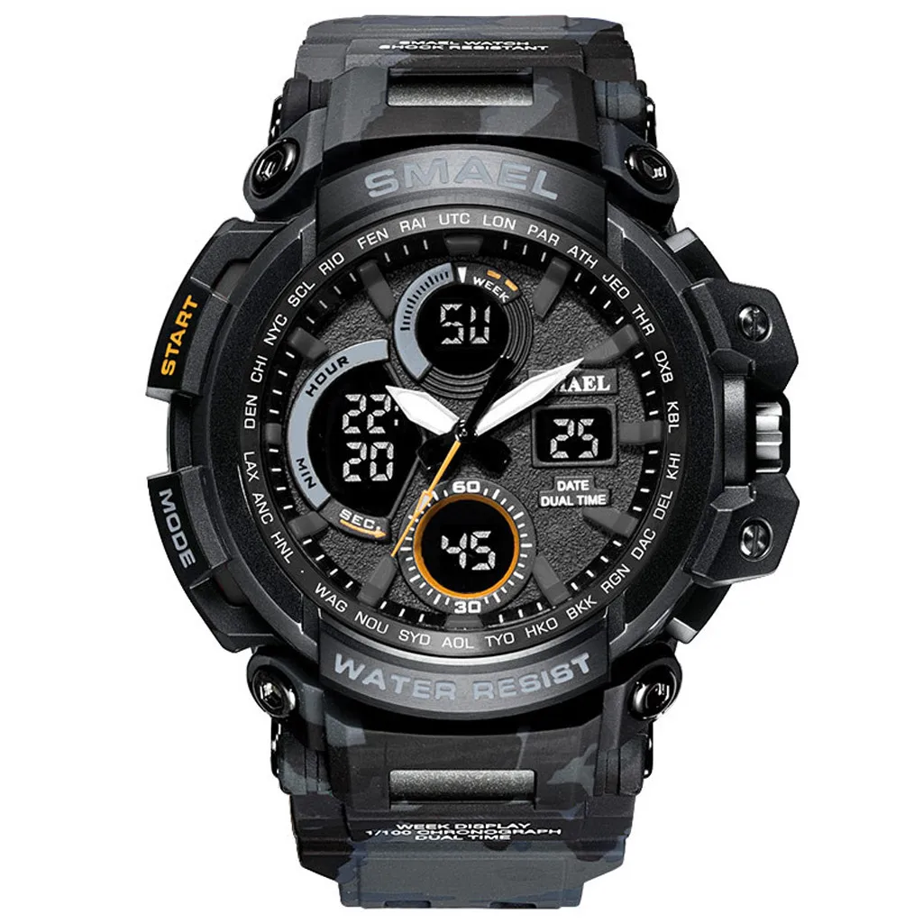 Часы наручные SMAEL мужские Цифровые, спортивные аналоговые светодиодсветодиодный электронные, с двойным дисплеем, подарок