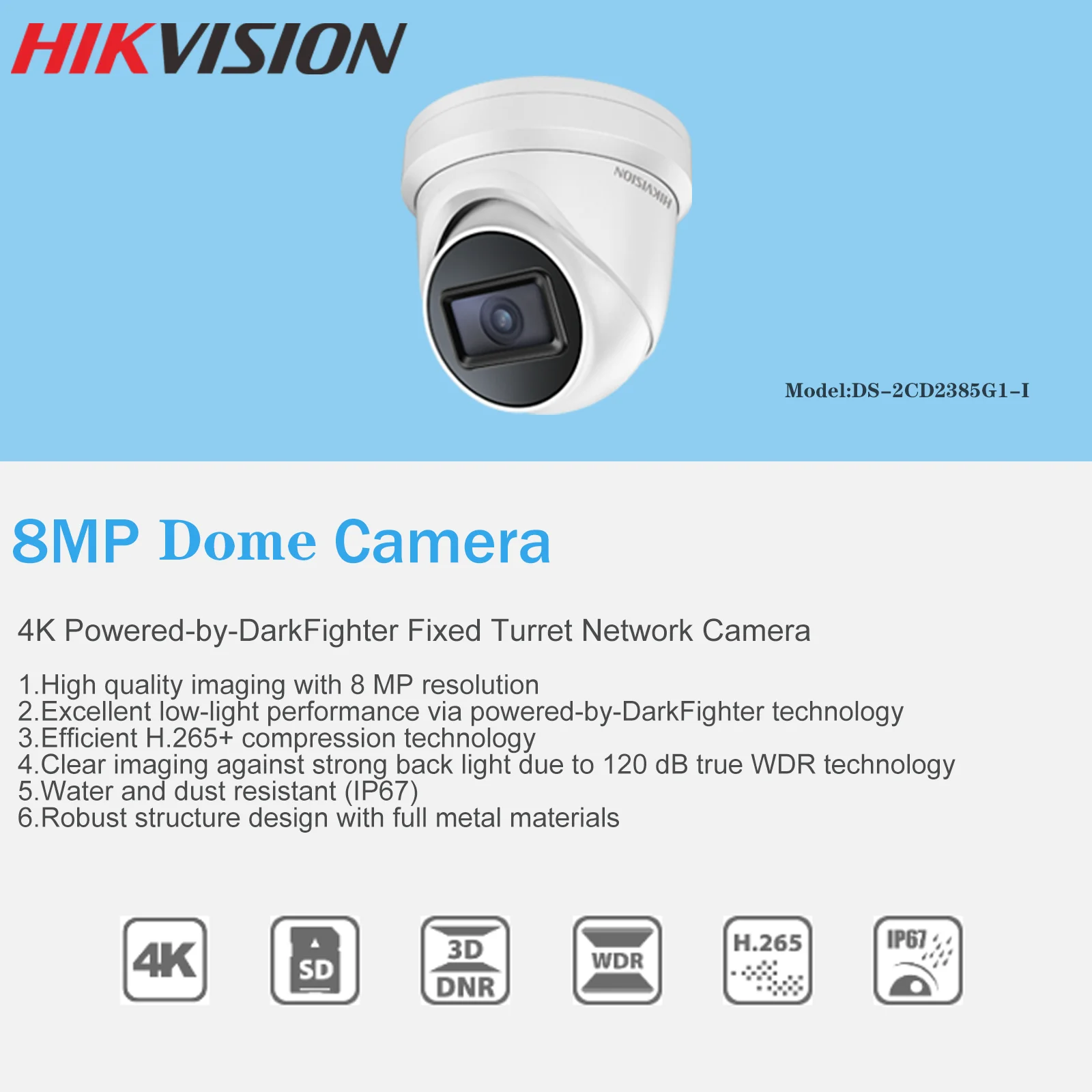 Hikvision 8MP 4K IP камера DS-2CD2385G1-I H265 + POE Bulit-in SD карта DarkFighter CCTV наружная камера видеонаблюдения купольная камера