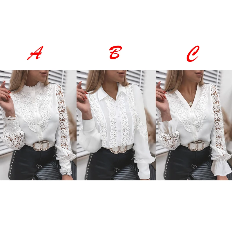 Женские модные белые кружевные ажурные рубашки с длинным рукавом Бл...