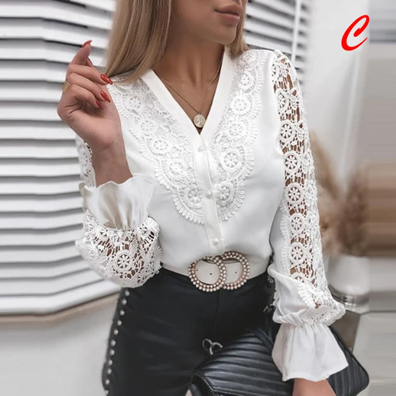 Элегантная кружевная рубашка, модные блузки 2021, ажурные женские р...