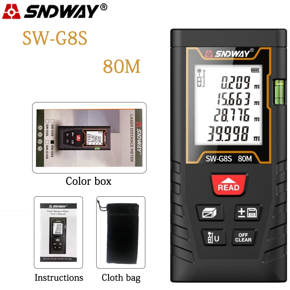 Лазер SNDWAY дальномер 40 м, 60 м, 80 м, 100 м, 120 м, дальномер, лазерная рулетка, дальномер, строительное измерительное устройство, линейка, инструмент для тестирования