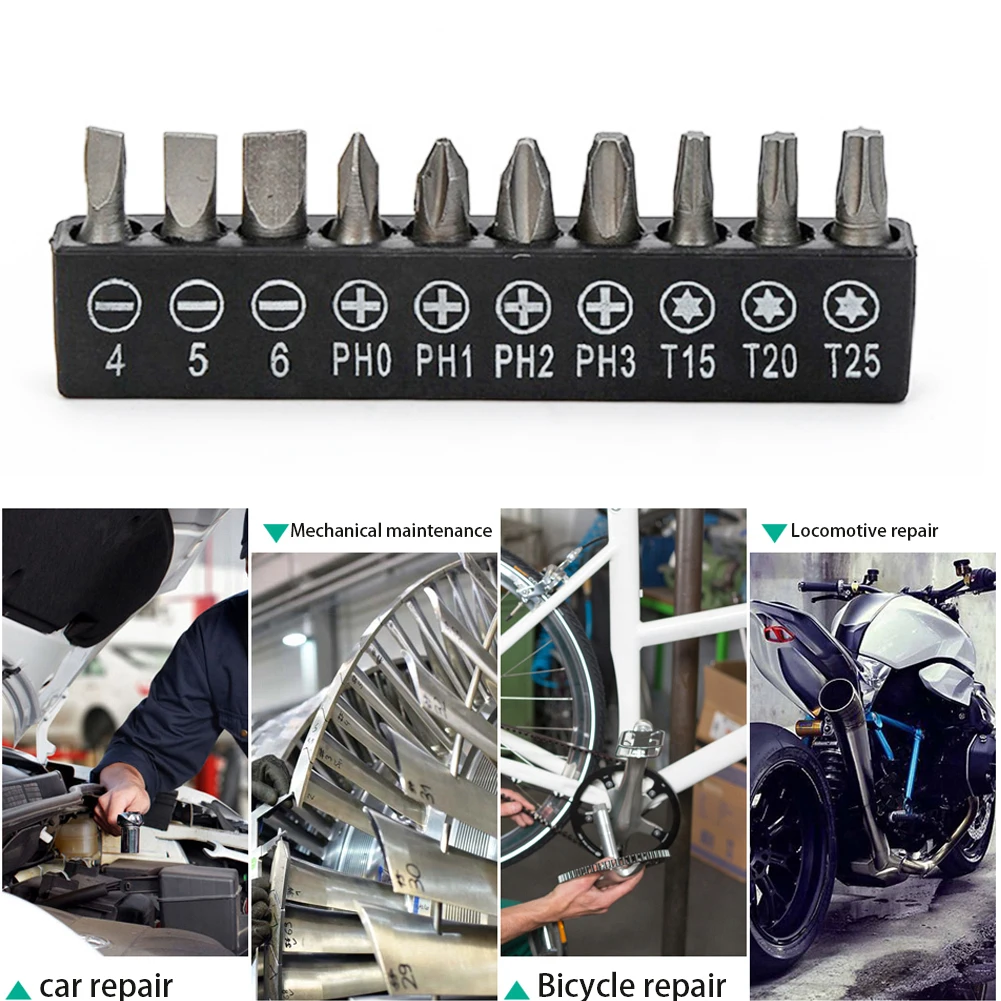 10 шт. набор вставных Бит Torx плоская головка крест нескользящий Электрический шестигранный хвостовик отвертка головка отвертка Набор отверток держатель бит