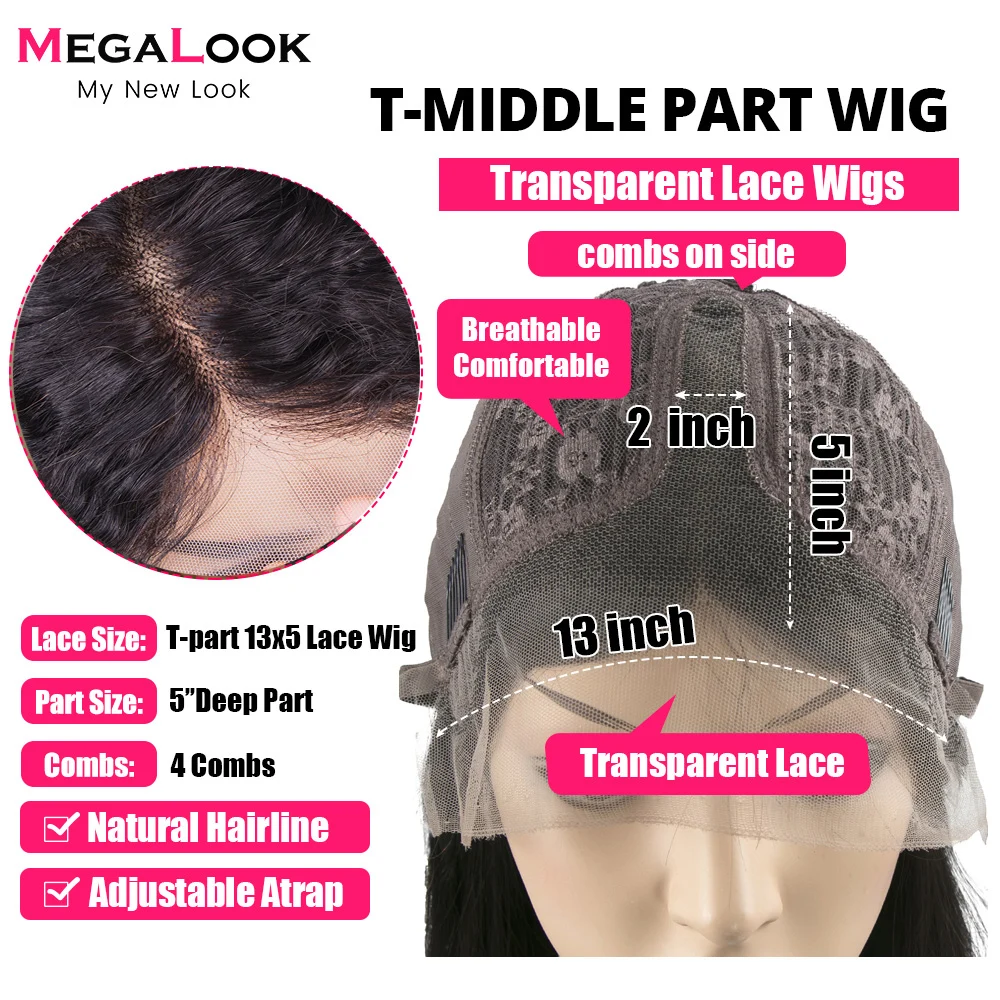Парик Megalook с прозрачной кружевной передней частью 13x5x 2, пари...
