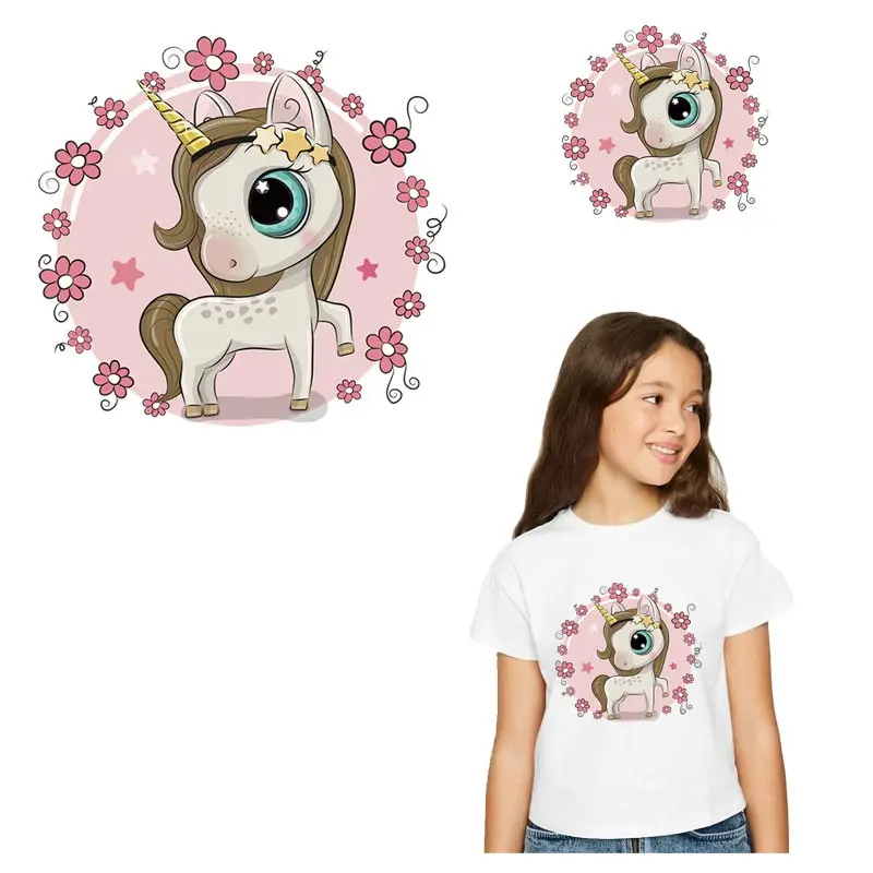 Термонаклейка Симпатичные животные для одежды, стирающаяся термонаклейка, милый Единорог на футболке, худи, аппликация, нашивка, Декор