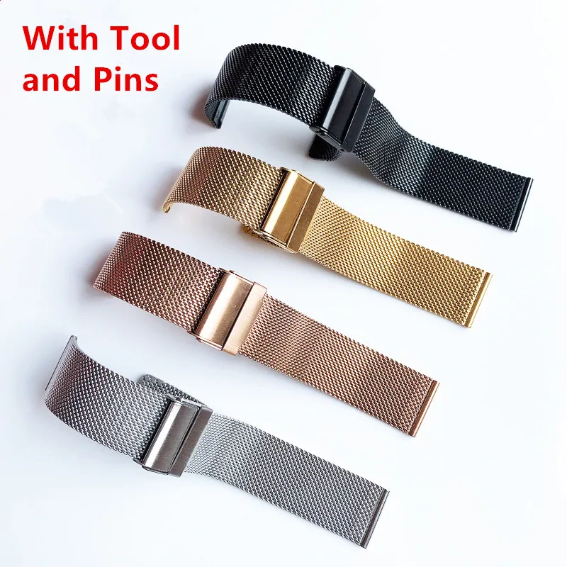 Сетчатый металлический браслет для DW Watch, ультратонкий универсальный браслет из нержавеющей стали, аксессуары для часов, 12 14 16 18 20 22 мм