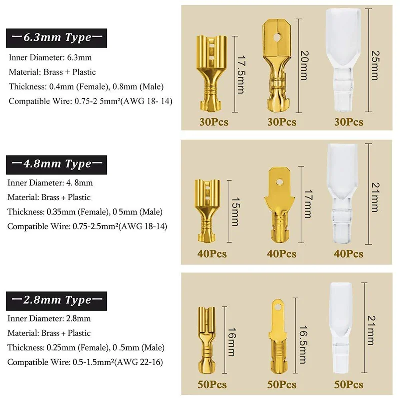 270 шт. изолированный Штекерный соединитель для проводов 2,84,86,3 ...