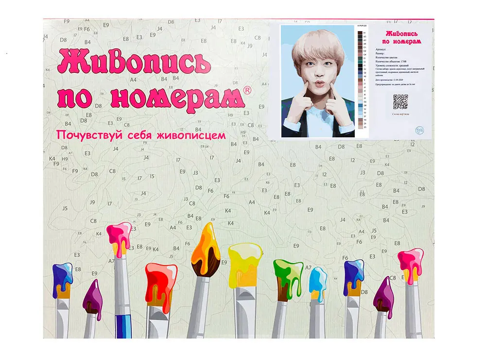 Картина по номерам с изображением любимого певца порадует и обязательно вдохновит на творчество даже тех, кто не брал в руки кисти много лет. Краски, как яркая музыка BTS, помогут создать настоящее произведение искусства на холсте на подрамнике. Напишите свой сюжет, передайте позитив и невероятную энергетику группы, у вас обязательно получится!