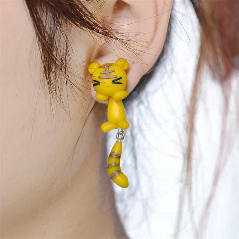 С героями из мультфильма «Мой сосед серьги TOTORO для Для женщин милые Animale тигра кролика рисунком героя мультфильма "Гарфилд" ручной работы глины стержня уха для девочек Висячие серьги ювелирные изделия