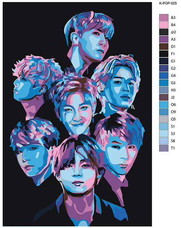 Картина по номерам Корейская K-POP группа BTS, 40x60 см, Живопись по Номерам, K-POP-025