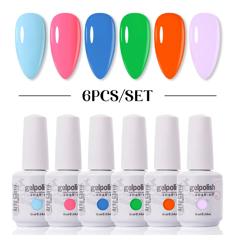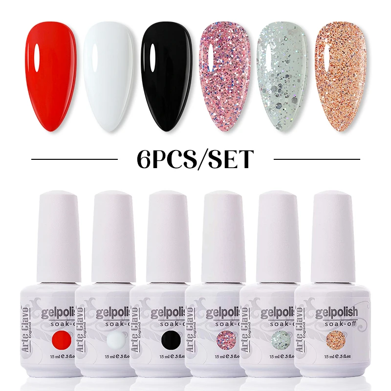 Гель-лак для Светодиодный гтей, 15 мл, гибридный, 6 шт.набор