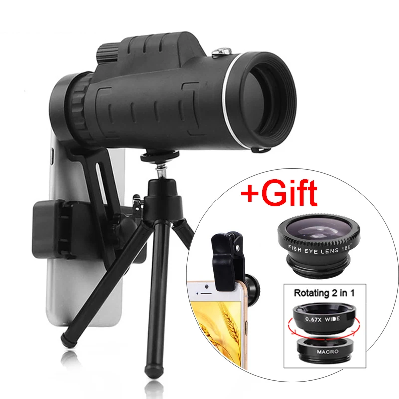 Монокулярный телескоп TOKOHANSUN с увеличением 40x60, широкоугольный увеличительный телескоп с зеркальным объективом, пылезащитный Компас для iPhone 8