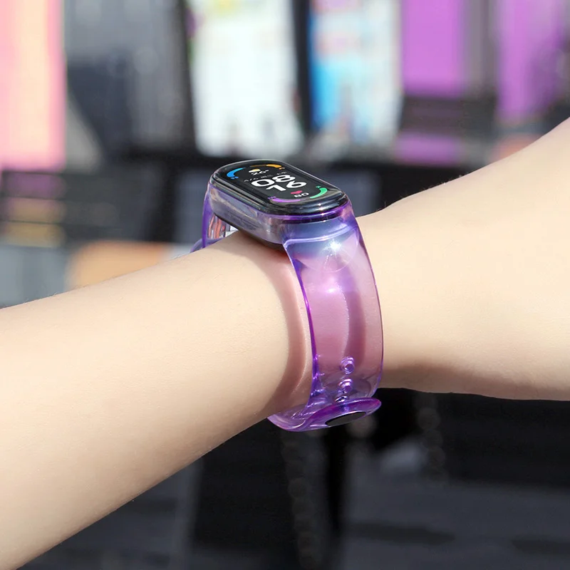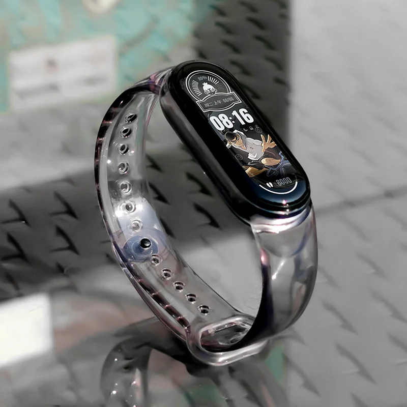 Силиконовый ремешок на запястье для Mi Band 6 5 4 3 Xiaomi, ремешок для браслета из ТПУ, карамельного цвета, прозрачный ремешок, сменный спортивный браслет, часы Это прозрачный ремешок, меняющий цвет, светлый в тени, на солнце становится темнее.
