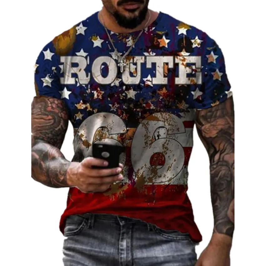 Футболка мужская с надписью Route 66, повседневная спортивная одежд...