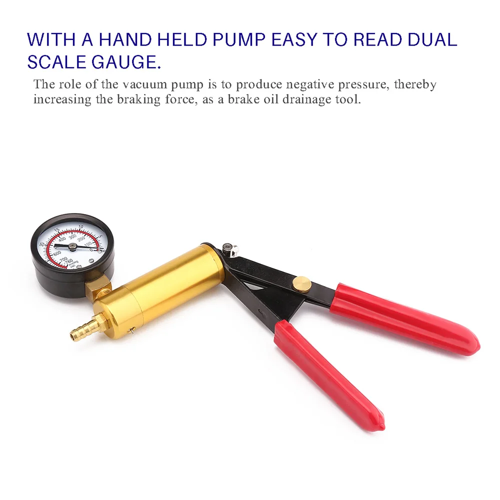 Характеристика: Профессиональный дренаж тормозного масла для автомобильного транспортного средства и уплотнение тормозного насоса для тестирования для обеспечения безопасного перемещения. Вакуумный насос kitcan проверяет все виды важных настроек и оборудования. Прикрепите шланги и адаптеры для работы с большинством транспортных средств для проверки вакуумных и тормозных систем. Роль вакуумного насоса заключается в получении отрицательного давления, тем самым увеличивая тормозное усилие, как инструмент дренажа тормозного масла. Идеально подходит для торможения и кровотечения топливной линии. С ручным насосом, легко читаемым с помощью двойного датчика. Поставляется в чехол для переноски для удобной транспортировки и хранения. Спецификация: Тип: комплект вакуумного насоса Материал: сталь Количество: 1 комплект Цвет изделия: как показано КороткийВакуумный шланг: 9,8 см/3,8" Длинный вакуумный шланг: 56 см Вакуумный насос с манометромРазмер: 28*11*3,2 см/11*4,4*1,2 "(Д * Ш * В) Вес нетто: 0,47 кг/16,5 унций Посылка: 1 * Вакуумный насос с манометром 4 * вакуумный шланг 2 * крышки 3 * тормозной Bleeder винт адаптер 2 * адаптер конического шланга 1 * прямой разъем 1 * т соединитель шланга 1 * резервуар тормозной жидкости 1 * Универсальный адаптер для чашки 1 * Пластиковый Чехол
