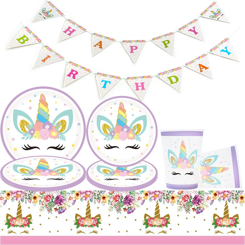 Цветок, единорог, аксессуары для украшения, фиолетовая бумажная чаш...