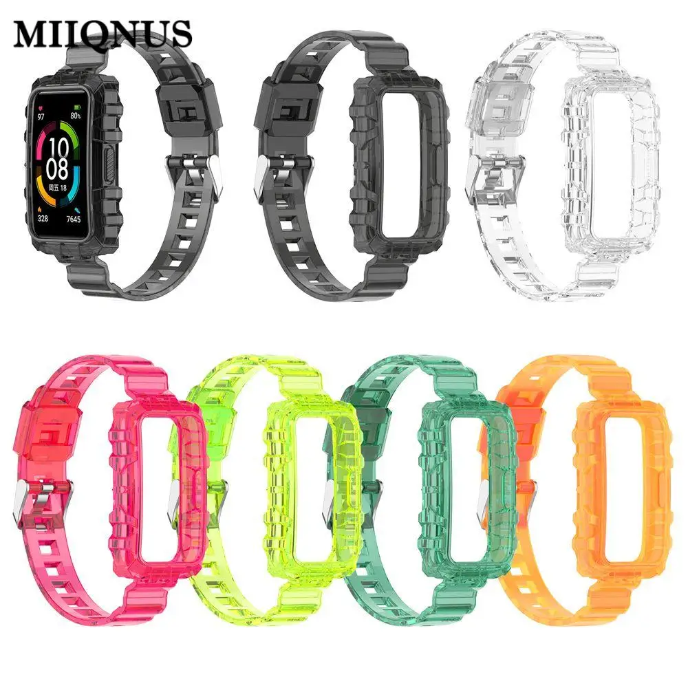 Новый ТПУ прозрачный смарт-браслет, ремешок для наручных часов, корпус с кристаллами для Huawei Band 6, Honor Band 6, ремешок для смарт-браслета