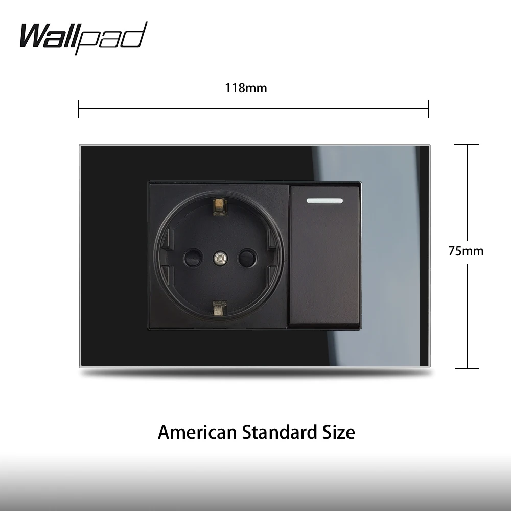 118*75 мм ЕС 1 банда светильник розетка Wallpad L3 черная стеклянная панель AU US 1 2 пути Кнопка прерывания с розеткой ЕС