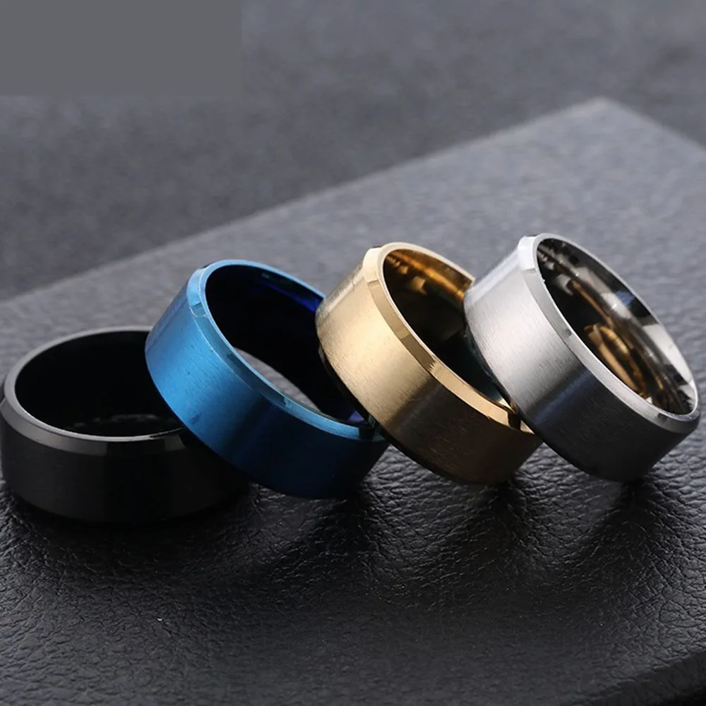 Кольца из матовой нержавеющей стали с простым дизайном, простые позолоченные, черные и синие кольца для мужчин и женщин, подарочные украшения, 8 мм