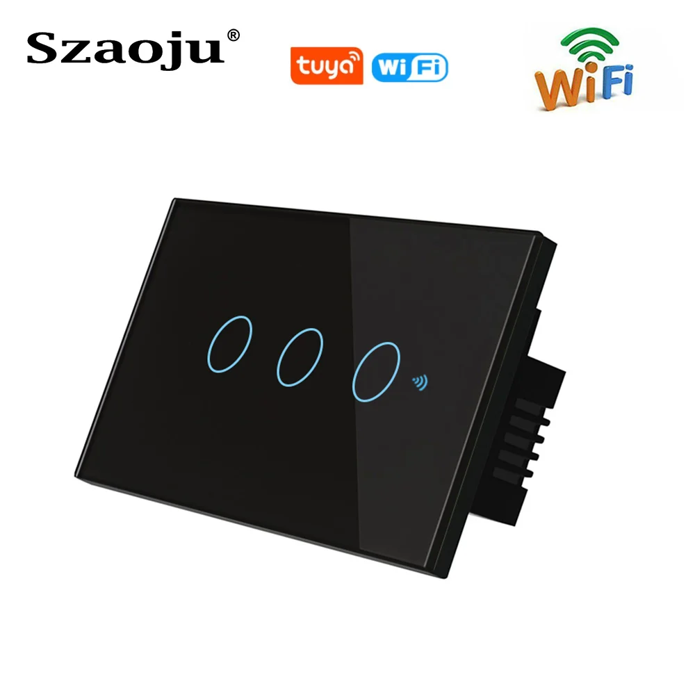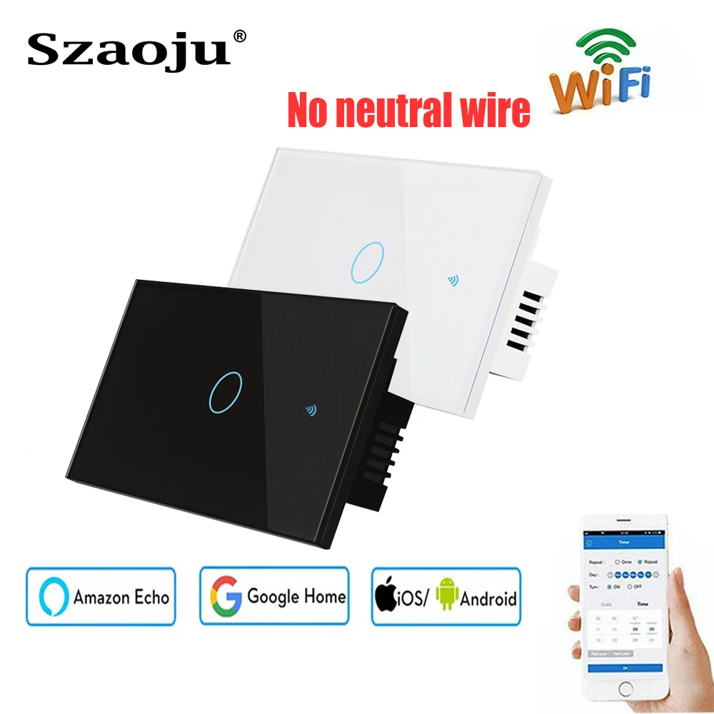 Сенсорный выключатель Szaoju, белая панель из хрустального стекла, Tuya Smart, 433 МГц, В переменного тока, 1 комплект, 1 канал, настенный светильник, настенный сенсорный экран стандарта США