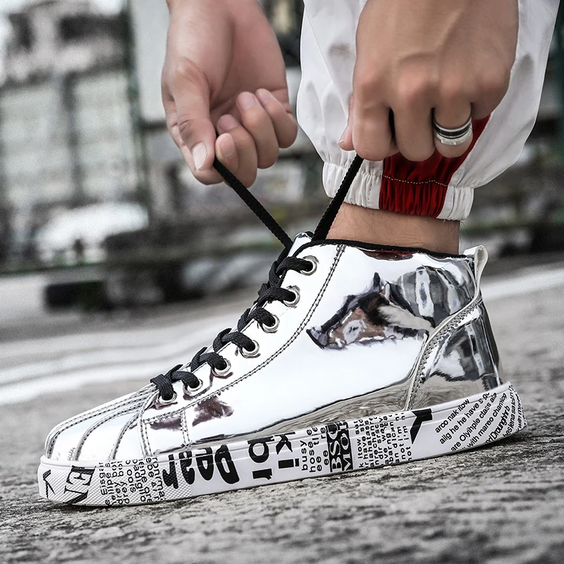 Кроссовки для Скейтборда для мужчин и женщин, лакированная кожа, плоская подошва, обувь для влюбленных, вечерние туфли для ночного клуба, лоферы под костюм для прогулок
