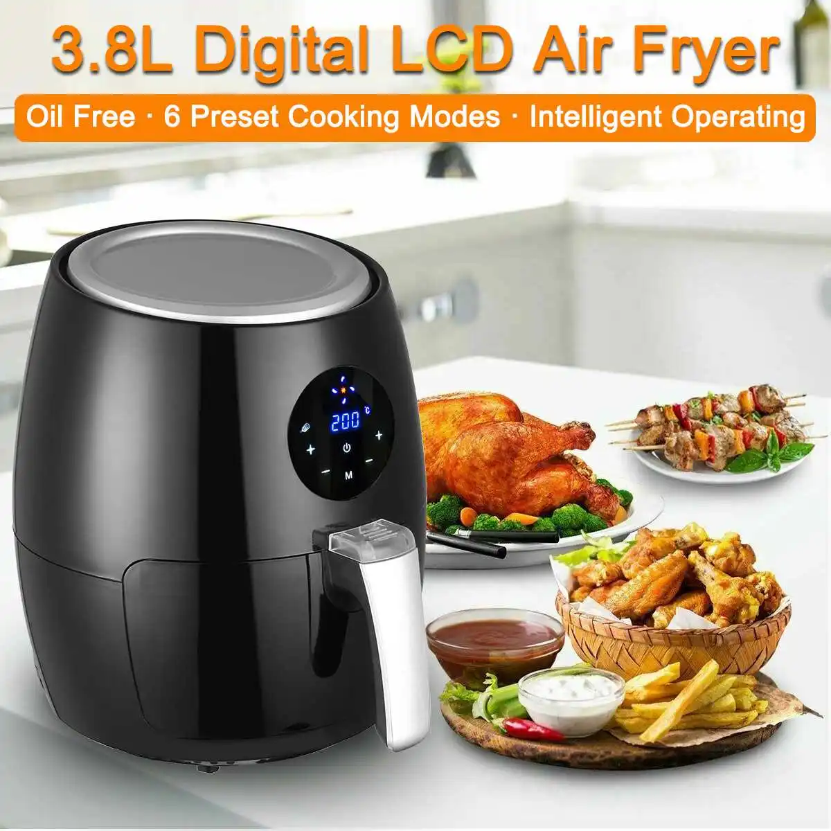 Характеристика:-Здоровая Жарка:LCD Цифровая воздушная фритюрница использует Циклон быстро нагреваемого воздуха для приготовления здоровых низкополных версий ваших любимых продуктов, используя мало масла-200 °C настройка тепла, жарить быстро:Быстро нагревается до 200 °C/400 °F, готовьте еду до 70% быстрее, чем обычные методы приготовления.-Воздушная жарка, на 75% меньше жира:Воздушная фритюрница с циркуляционной системой горячего воздуха, позволяет вашей еде готовиться во всех направлениях и равномерно нагреваться с небольшим количеством масла без добавления масла. Меньше жира, более здоровый.-6 прекрасных режимов приготовления:Готовьте все ваши любимые блюда беспорядок и хлопот бесплатно, выбирая из предварительно установленных режимов приготовления пищи, которые гарантируют идеальную еду. К ним относятся курица, чипсы, рыба, стейк, креветки, свинина.-Цифровой ЖК-дисплей:Выберите одно из 1 6 предустановленных режимов приготовления, независимый контроль температуры и интуитивно понятный кухонные Таймеры с простым в использовании цифровым дисплеем.-Съемная безопасная корзина для посудомоечной машины (3,8 л Сковорода с корзиной 2,8 л)Воздушная фритюрница Uten оснащена съемной безопасной антипригарной корзиной и сковородкой для посудомоечной машины и спроектирована с помощью кнопки для предотвращения случайного удаления корзины и горшка. Легко переносить горячую еду на тарелку, поэтому будьте уверены, что Наслаждайтесь временем приготовления пищи и не беспокойтесь о безопасности.-Классная сенсорная ручка:Съемная корзина 2.8L позволяет быстро и легко удалить вашу корзину для фритюрницы, готовую выпустить вашу еду на тарелку, в то время как прохладная сенсорная ручка означает, что вы можете легко и без беспокоясь о том, что ручка слишком горячая, чтобы прикоснуться.-Многофункциональная печь горячего воздуха:Не только жарить, но гриль, жарить, пар и даже испечь ингредиенты с этой воздушной фритюрницей. Это хороший кухонный помощник, когда готовите еду для своей семьи или развлекайте своих друзей.-Легко чистить:Большая полностью съемная корзина для жарки в семейном размере размером 2,8 л позволяет легко чистить и полностью безопасно мыть в посудомоечной машине! Таким образом, вы можете жарить, гриль, испечь и жареное масло, полезное для здоровья бесплатное питание для всей семьи.-Здоровый:Поднос для капель улавливает лишний жир практически без вины-Жарка с меньшим количеством жира и меньшим количеством калорий-масло не требуетсяСпецификация:Материал: полипропиленНапряжение: 120 В/230 ВМощность: 1350 ВтРежим управления: Интеллектуальный сенсорный экранВыбор режима: точный контроль температурыЕмкость жареной корзины: 2,8 лЕмкость кастрюли: 3,8 лСценарий применения: кухняВилка: вилка стандарта ЕС/СШААутентификация: FDA/EDL аутентификацияПосылка включает в себя:1 Воздушная фритюрница1 x антипригарная корзина1 x Руководство пользователя