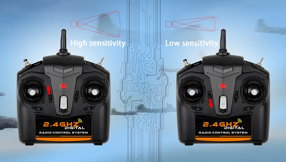 4. Три различных режима полета (Начинающий/средний/продвинутый) для различных летающих опыта могут быть изменены на флип переключателя.