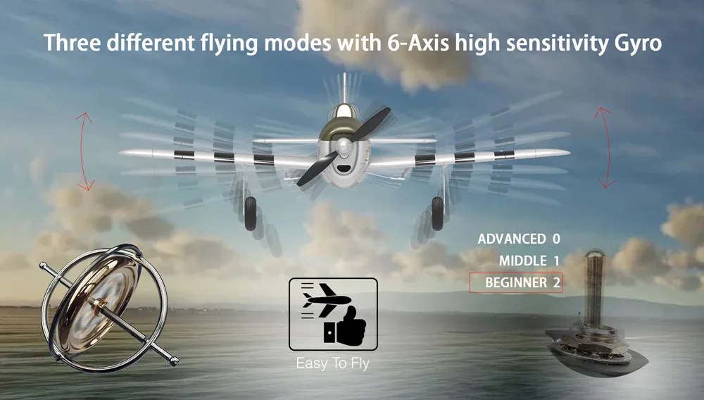 Это самый простой RTF полномасштабный Warbird Eachine для начинающих, его ультра легкий Летающий вес позволяет лететь его везде, не беспокоясь о регулировке воздуха. С помощью универсального и умного управления полетом внутри самолета, этот самолет позволяет практически любому, кто учится успешно лететь, не беспокоясь о потере контроля и авариях. Модульная конструкция и съемные крылья и хвост делают его еще легче для наружного полета.