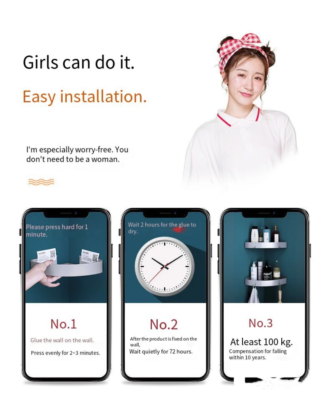 Полки для ванной комнаты, треугольный стеллаж для хранения, без перфорации, настенный стеллаж для шампуня, аксессуары для ванной