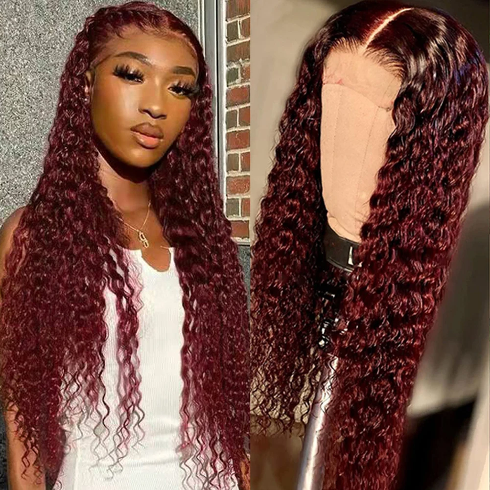Парик AIMEYA из бразильских человеческих волос на сетке спереди для черных женщин, HD прозрачный парик на сетке, бордовый Длинный свободный вьющийся парик, натуральные волосы