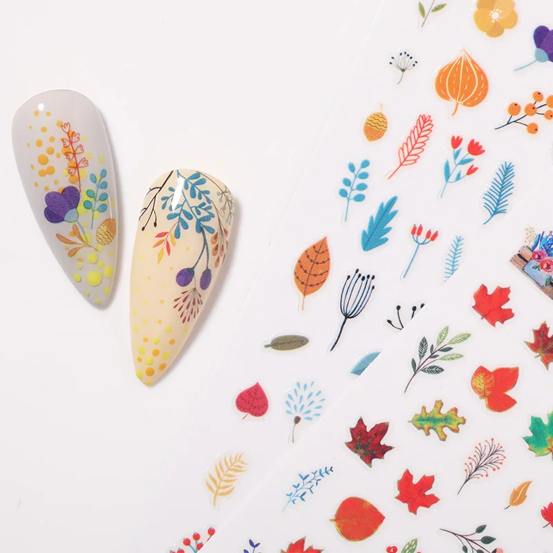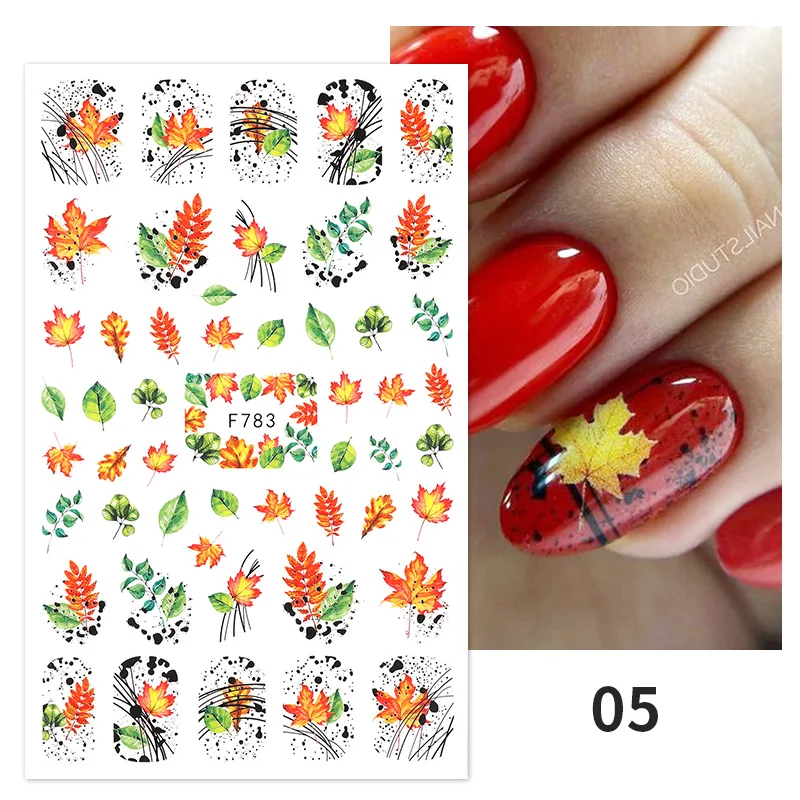 Кленовые листья 3D наклейка для ногтей Золотой Черный переливающийся лист Дерево Геометрические линии клейкая переводная наклейка сделай сам украшение для ногтей
