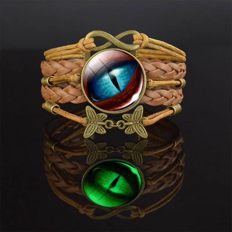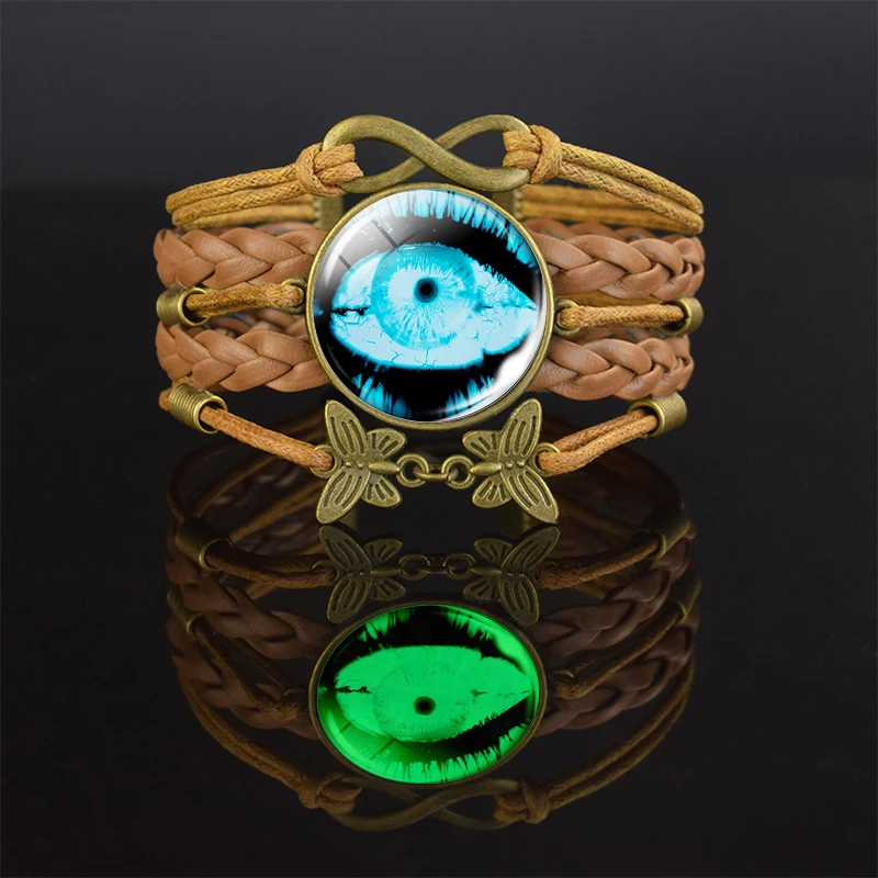 2021 светящиеся браслеты, браслет для женщин, коричневые кожаные плетеные браслеты ручной работы, женские браслеты, крутые браслеты с изображением сглаза дракона, женский браслет Bijous Femme