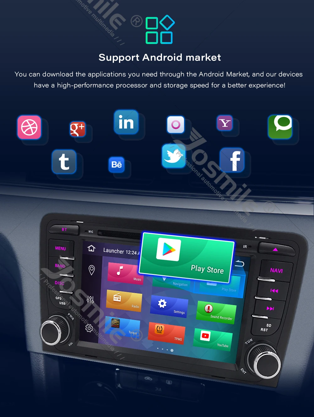 Автомобильный DVD-мультимедийный плеер DSP, 4 Гб, 2 din, Android 11, для Audi A3, 8P, S3 2003-2012, RS3