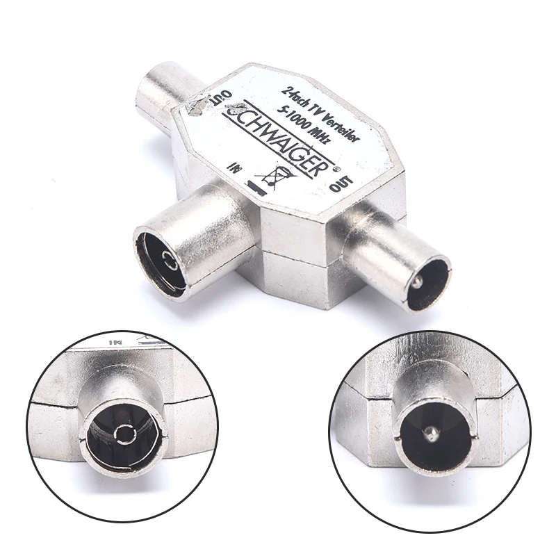 Двухсторонний разъем разделителя телевизора, коаксиальный T-образный 9,5 штекер-гнездо, антенный разъем