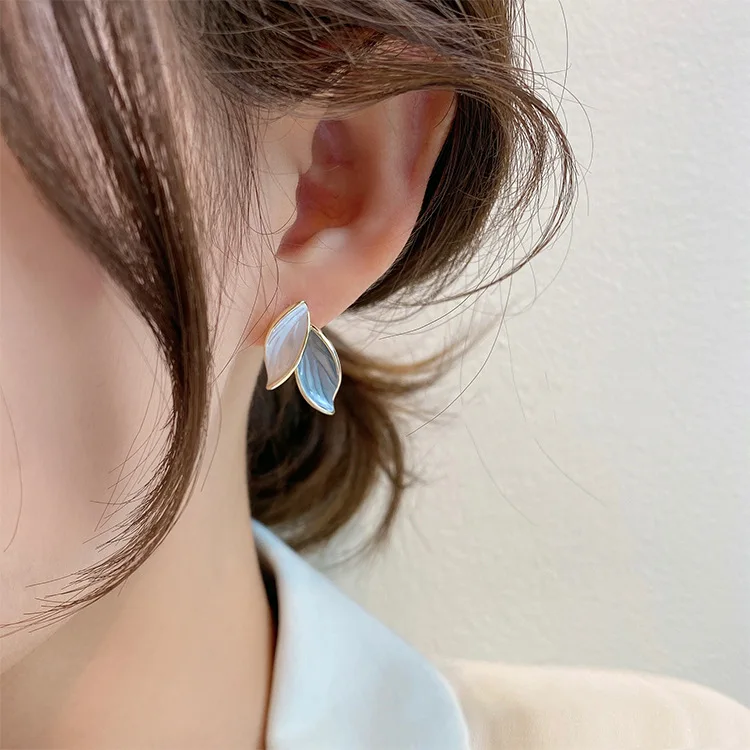 Корейские модные серьги для женщин, висячие серьги с 2 листьями и з...
