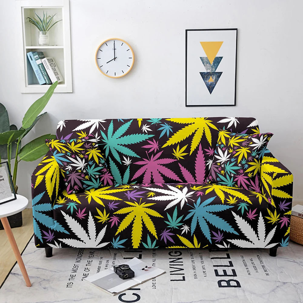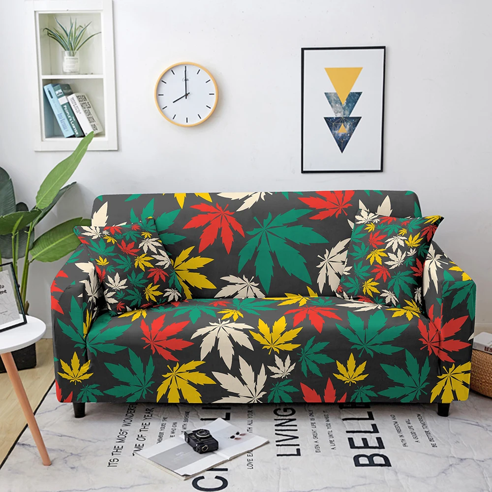 Эластичные Чехлы для дивана в гостиную, чехлы для дивана с кленовыми листьями, эластичный чехол для дивана, защитный чехол для дивана на 1234 места