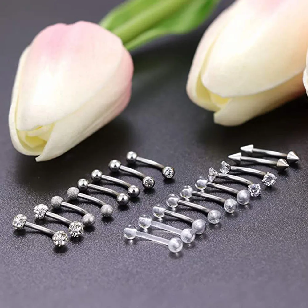 Серьги-гвоздики из нержавеющей стали для бровей, кольцо для губ с фианитами, пластиковые изогнутые штанги в стиле панк, ювелирные изделия для пирсинга тела