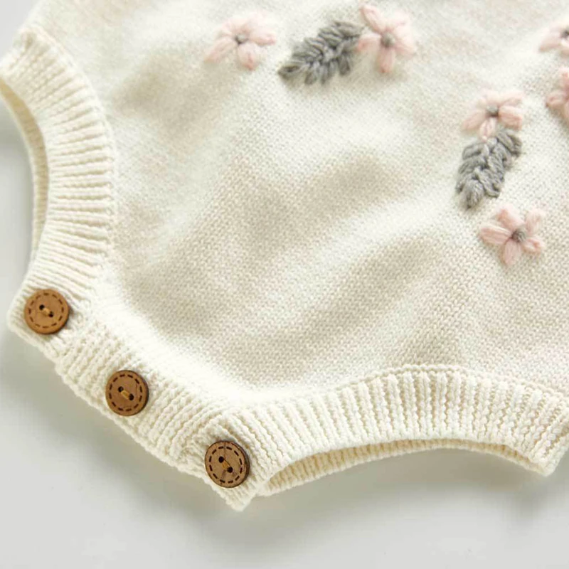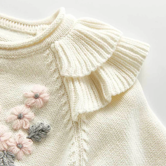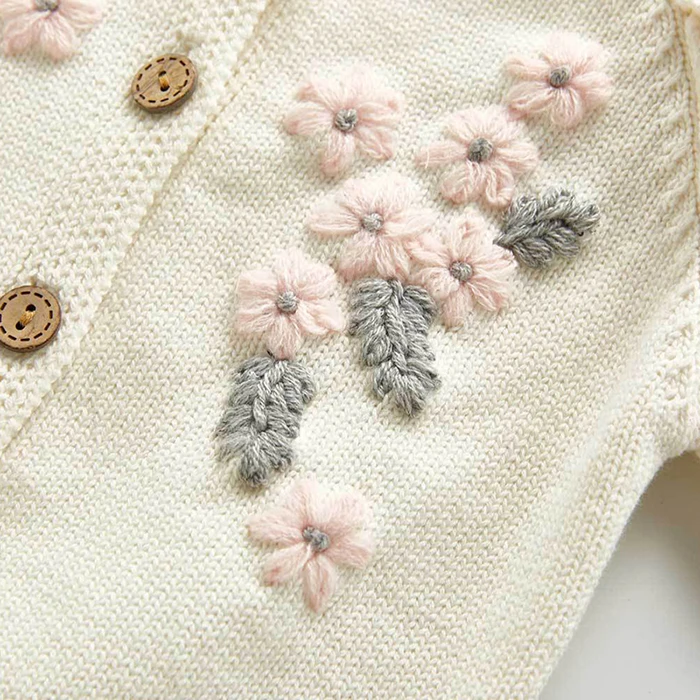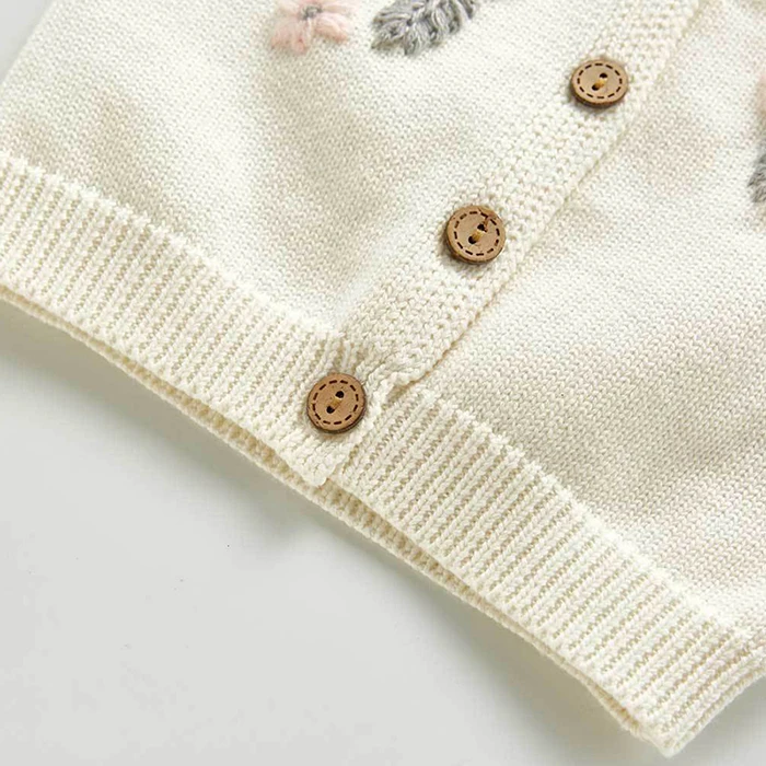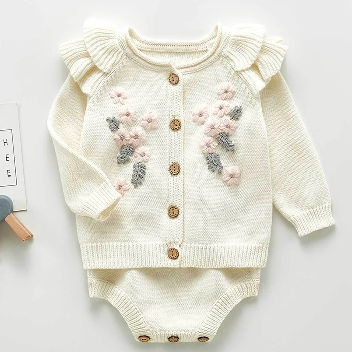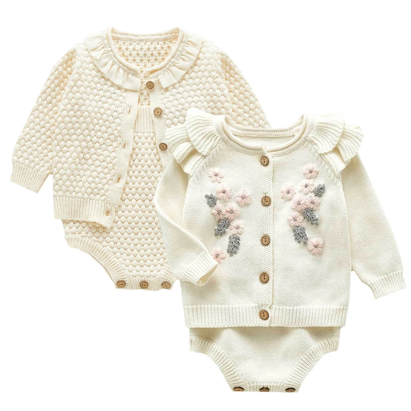 Вязаные комплекты одежды для маленьких девочек, цветочный Кардиган с длинным рукавом + комбинезоны, весенне-осенний костюм для маленьких девочек