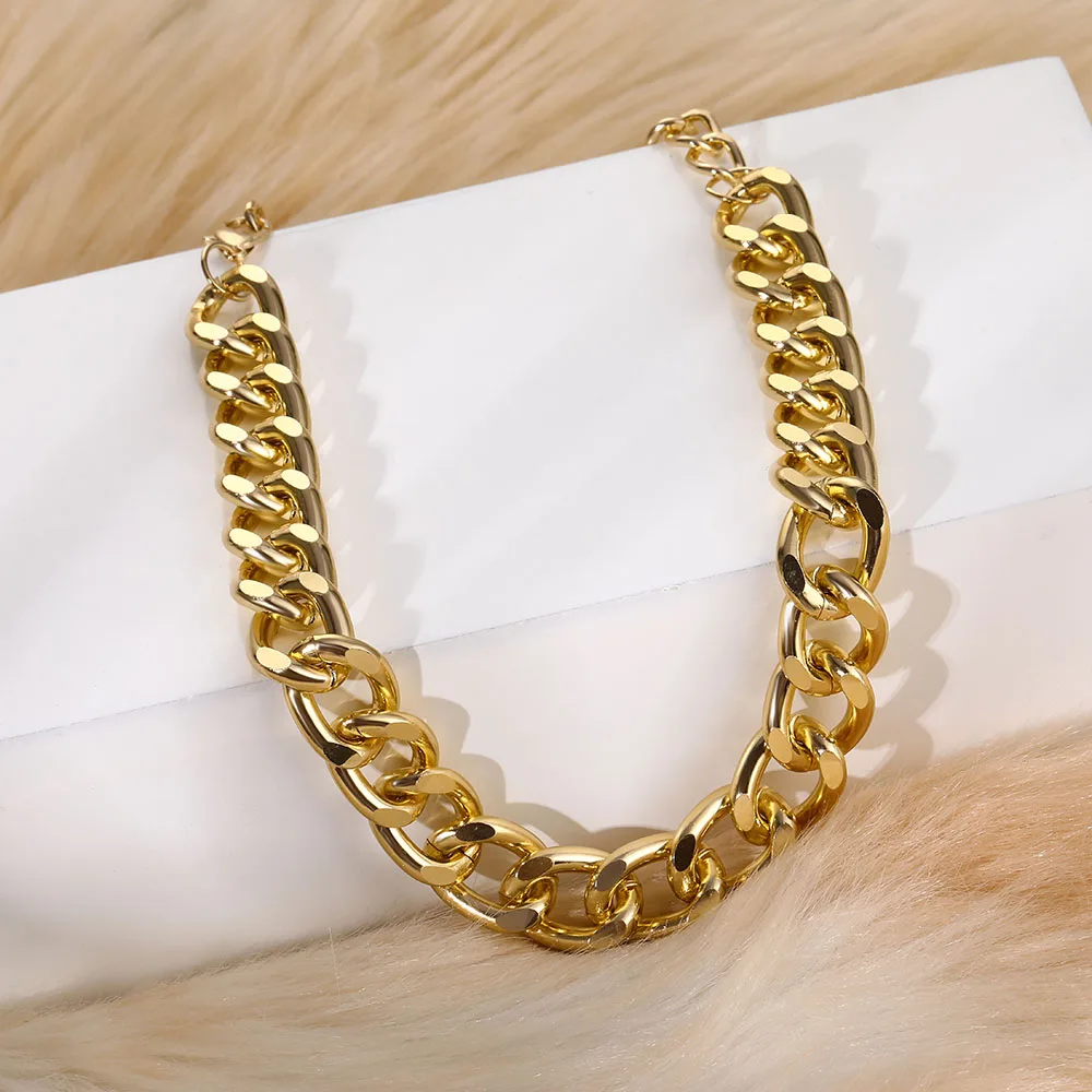Женское кубинское ожерелье FNIO, толстая алюминиевая цепочка золотого цвета, в стиле панк, Майами, 2021
