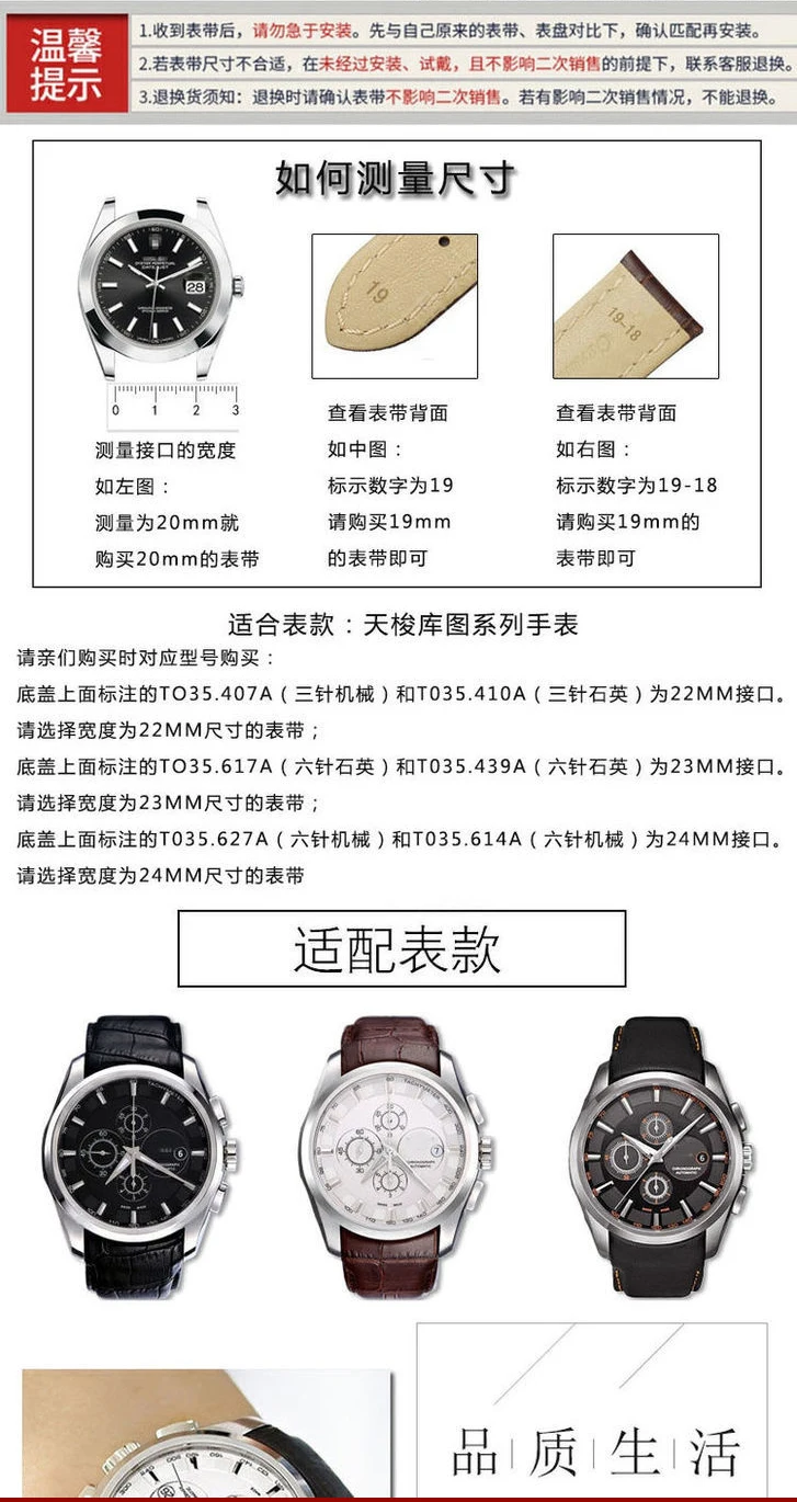 Подходит для Tissot COUTURIER T035, кожаный ремешок для часов T035627 arc mouth и T035407, ремешок для часов 2223 мм 24 мм