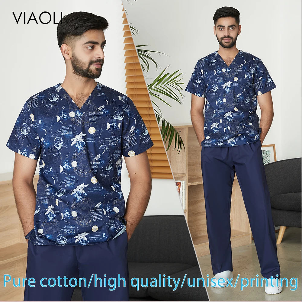 Унисекс, хлопковые медицинские скрабы с принтом, одежда, униформа д...