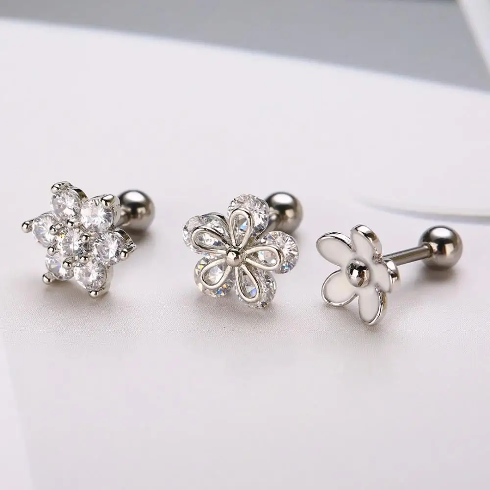 Серьги-гвоздики со стальным фианитом, украшение для пирсинга в виде цветов и короны, украшение для пирсинга, животное для детей и женщин, 12 шт.