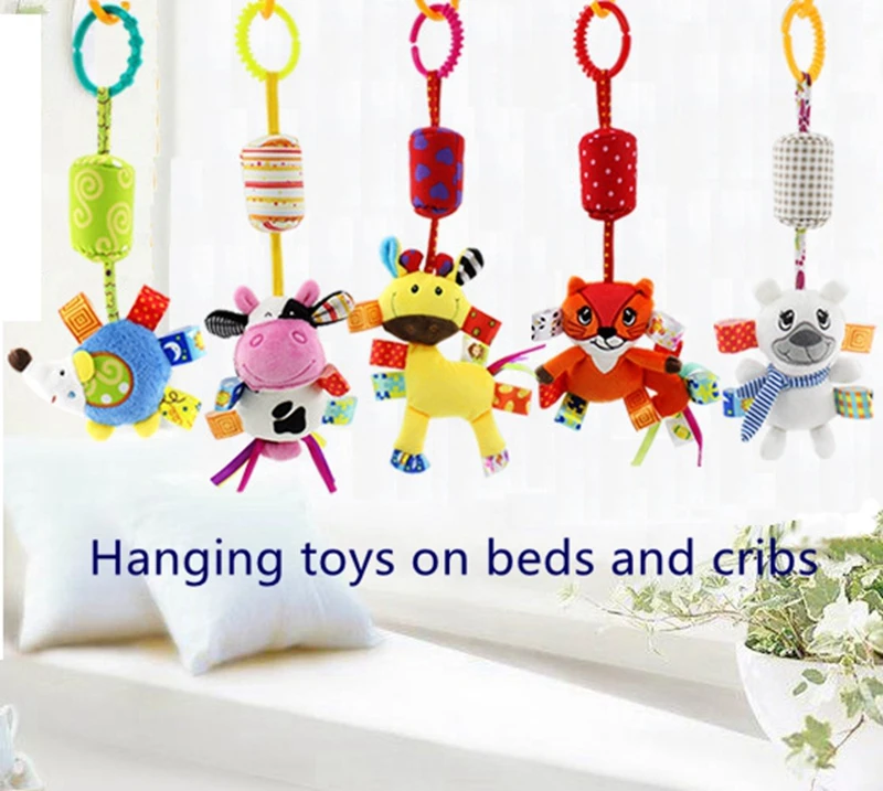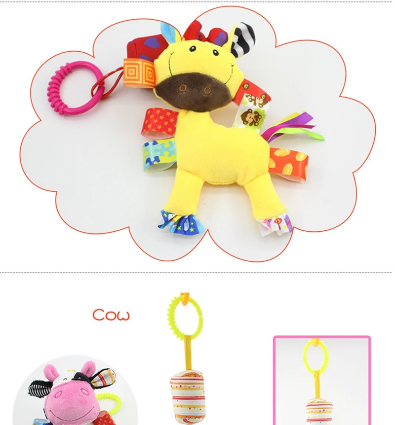 Детская плюшевая коляска для новорожденных, яркий мобильный телефон, Мультяшные животные, подвесной колокольчик, Обучающие Детские игрушки 0-12 месяцев, игрушки